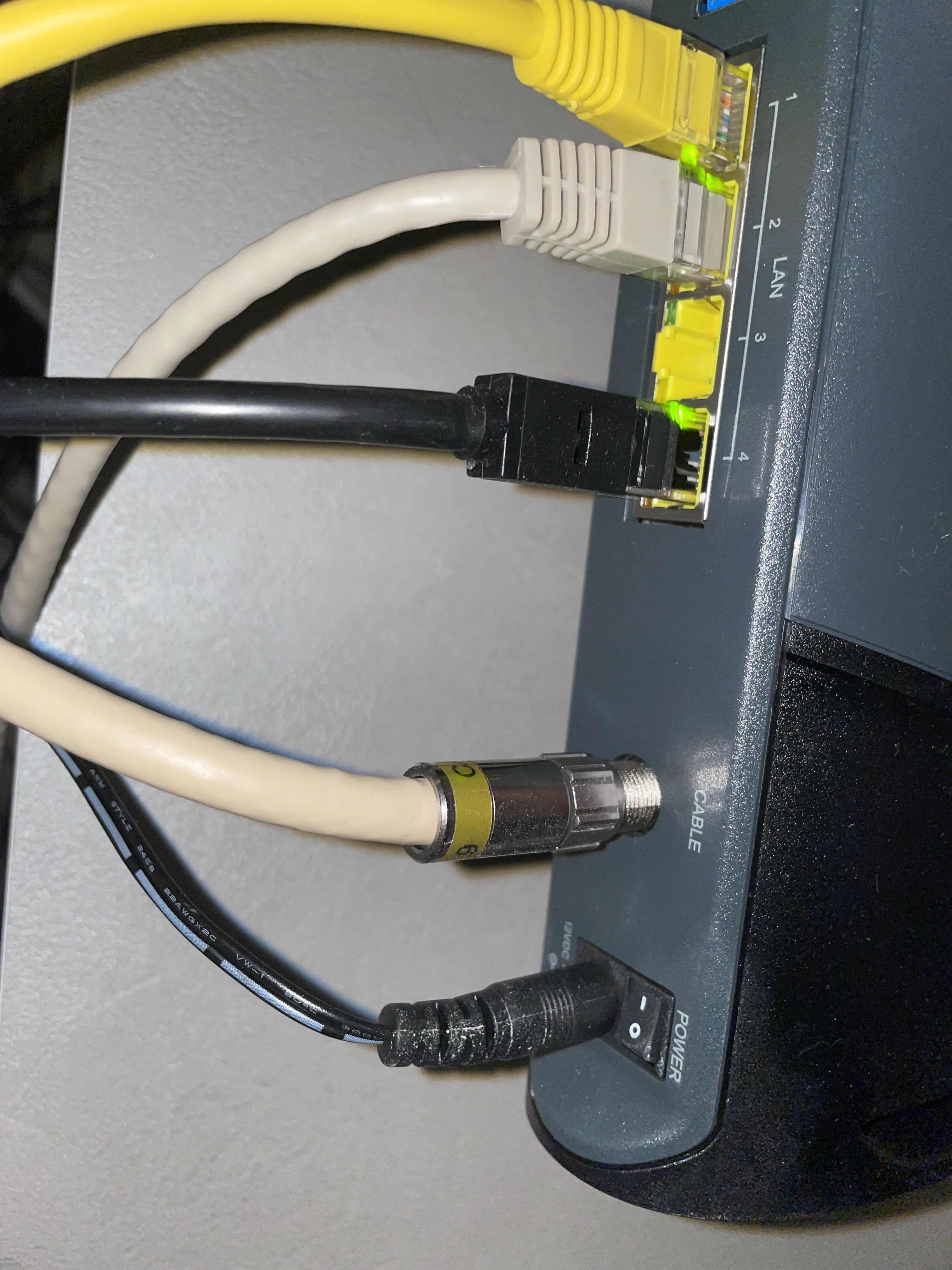 DER ist mit dem Internet verbunden. Wenn du dem WAN Kabel folgst, könntest du mit Glück auf ein Netzwerkverteiler stoßen mit Patchpanel.