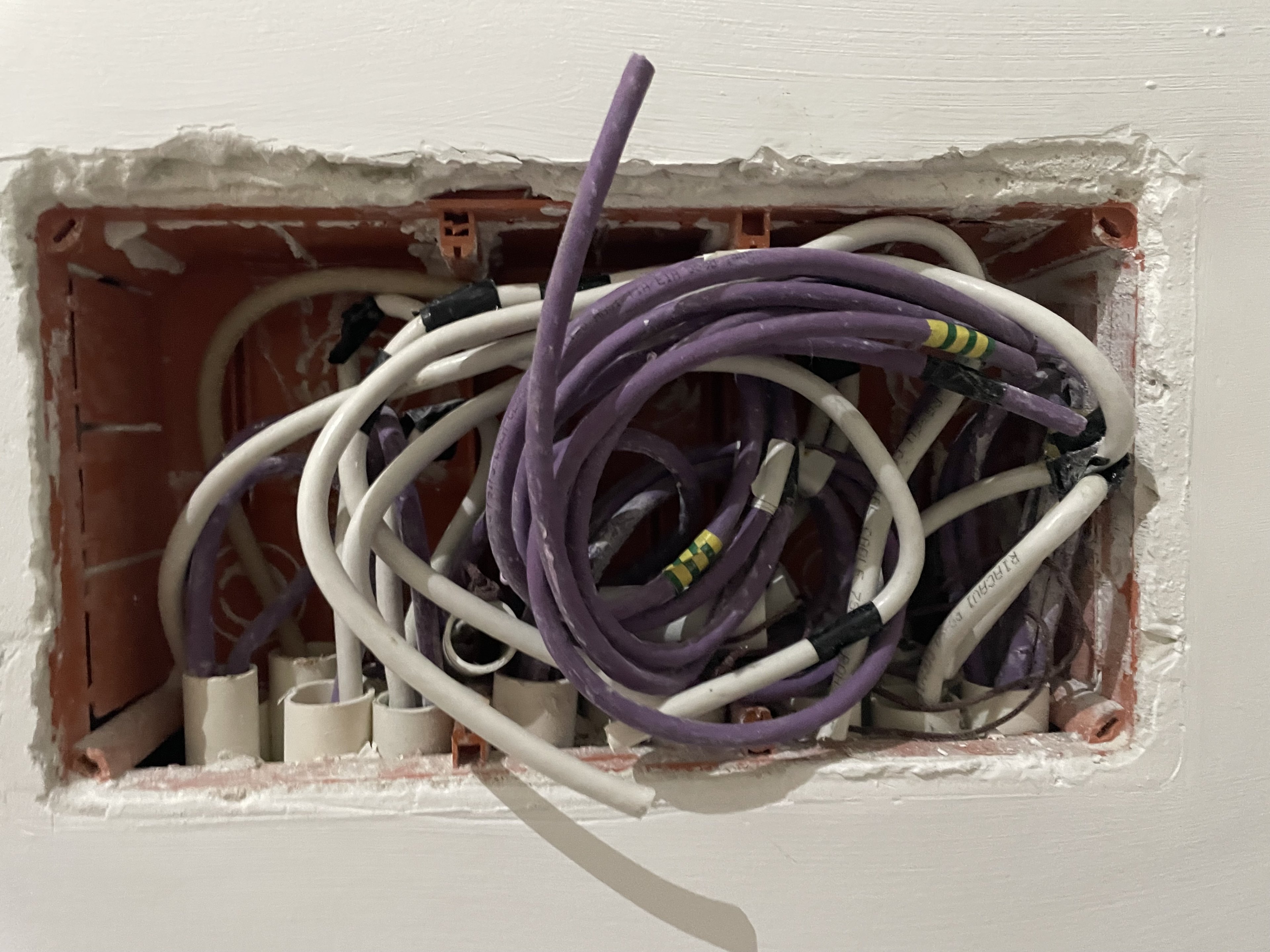 Also ich habe etwas gefunden was hinter einem Möbelstück versteckt wurde. Es hat definitiv etwas mit der Netzwerk Verkabelung zu tun, jedoch kann ich als absoluter voll leie nicht sagen, was es sein soll. Die Deutsche Feinarbeit kennen die hier wohl nicht, egal wie viel man im Monat für eine Immobilie zahlt.