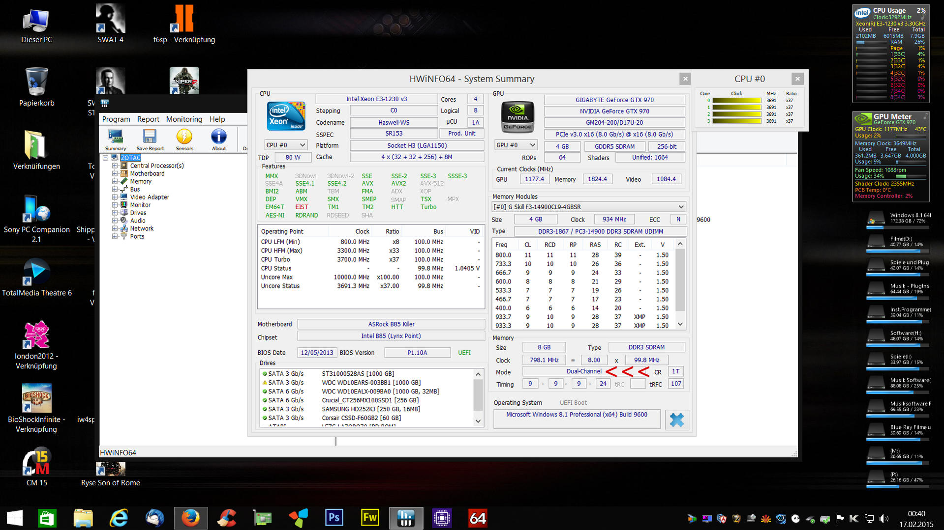 -Für Prozessor Daten: CPU-Z