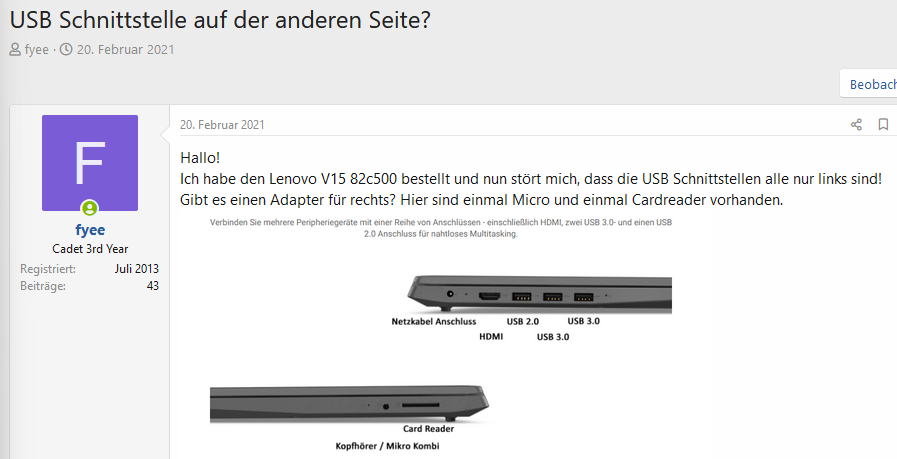 Mein Notebook ist ein Lenovo V15 IIL falls relevant
