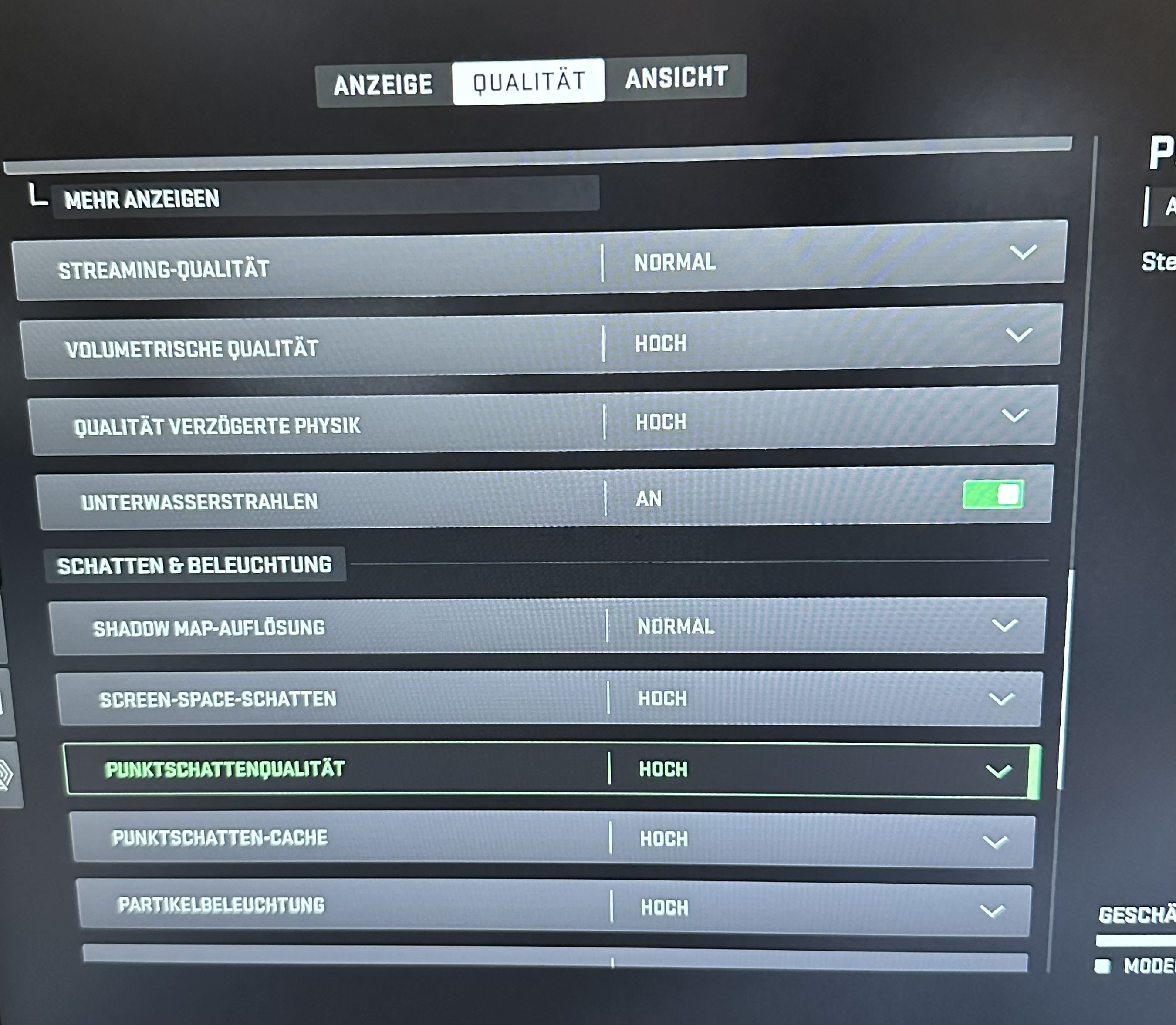 ScreenSpaceShadowQuality:0.0 = "High" // one of [Off, Low, High]