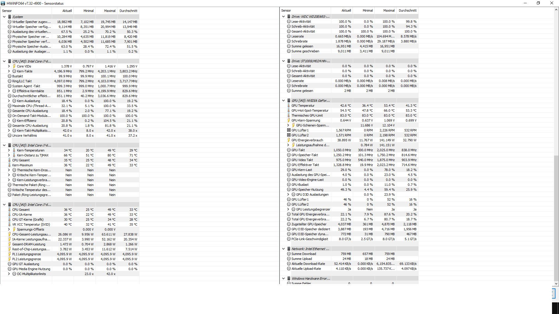 Afterburner sowohl HwInfo zeigen mir aber eine aktuelle Last im Spiel von 20-40% im CPU Bereich und GPU ca bei 20% wenn ich das richtig sehe..