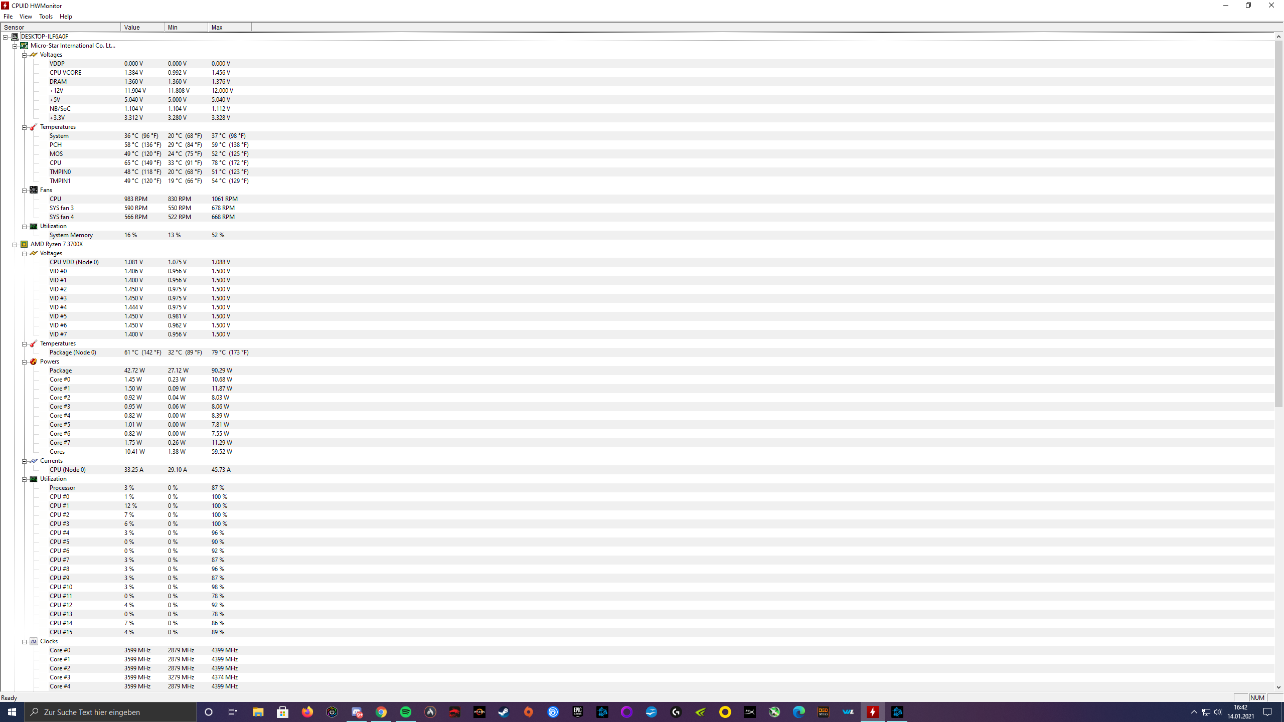 Ich habe an meinem PC nichts verändert oder umgestellt. Mein RAM läuft auf XMP 3200 MhZ und alle Treiber sind aktuell. Habe aich mal HW Monitor mitlaufen lassen während meiner heutigen Session Ich sehe da nichts ungewöhnliches. Bin aber auch kein Fachmann.