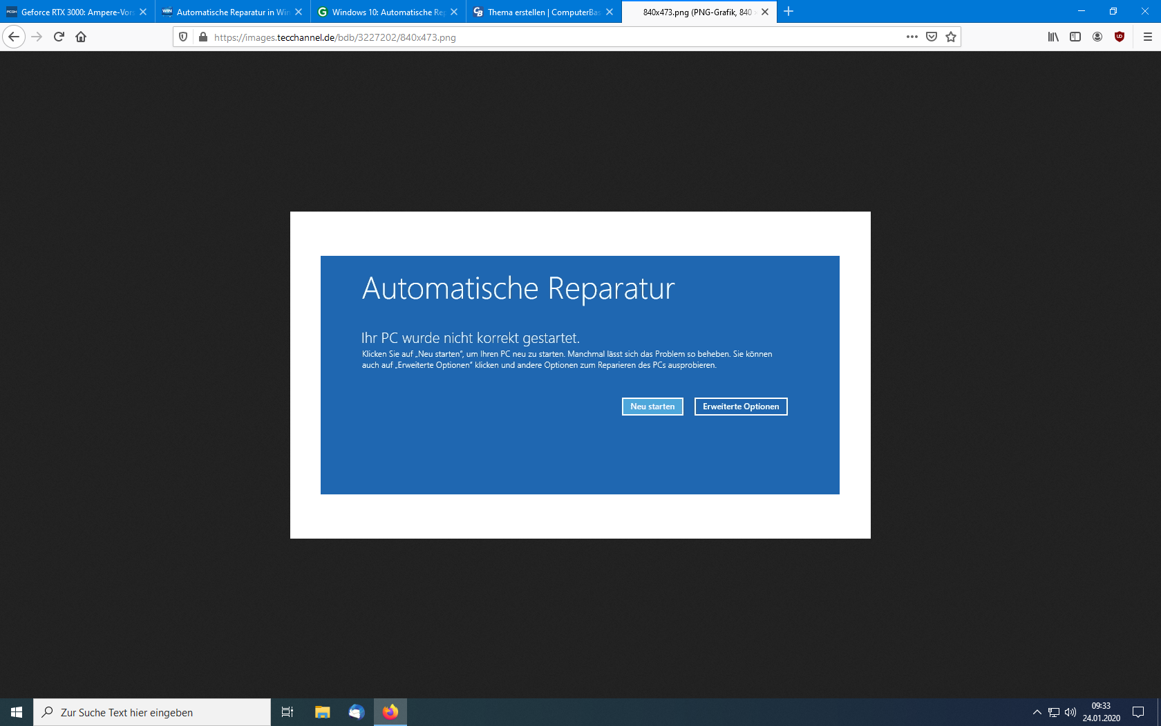 Die Person kann Windows nicht richtig starten weil immer die Meldung ,, Automatische Reperatur" siehe Bild erscheint. Ich habe natürlich gegoogelt und da stand was von: das man diese Meldung im abgesicherten Modus deaktivieren kann, um das Problem zu lösen. Bis jetzt hat diese Person ein Neustart mehrmals versucht, leider ohne Erfolg.