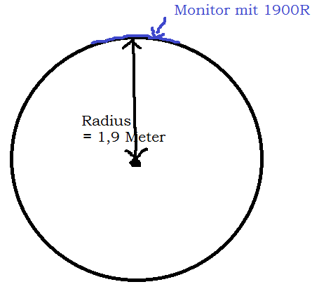 Ist mit Radius gemeint, dass wenn ich 3,8 Meter vom Monitor weg sitze, ich immer den gleichen Blickabstand zum Monitor habe, egal ob ich außen oder mittig hinschaue?