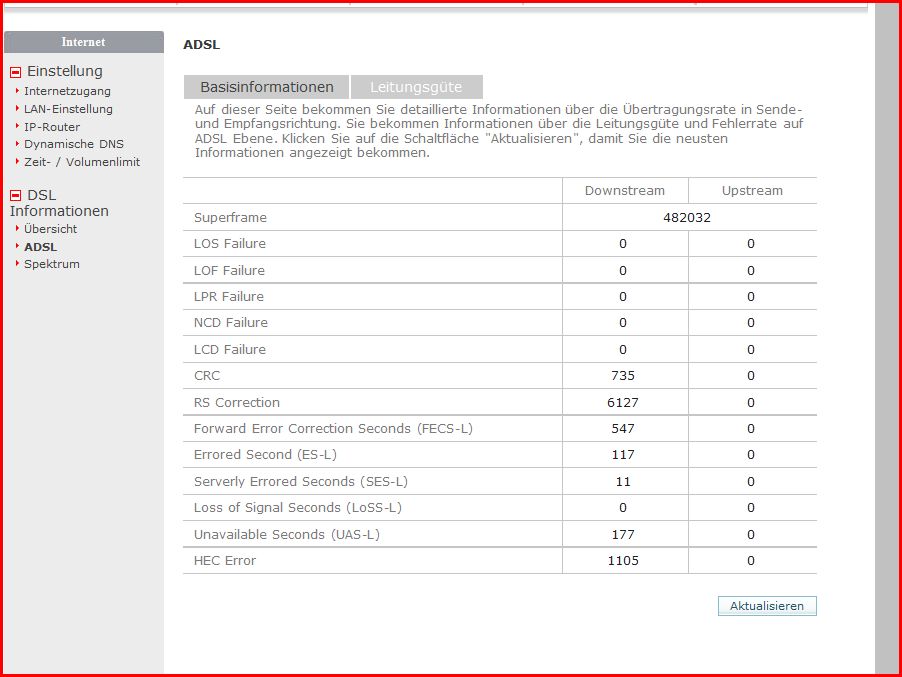 in einem Menu des Samsung Routers befinden sich Informationen über die "Leitungsgüte".