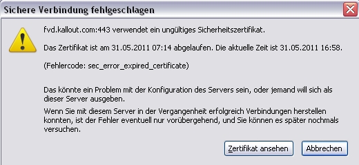 Naja, laut Meldung ist das Zertifikat heute um 7:14 abgelaufen. ;)