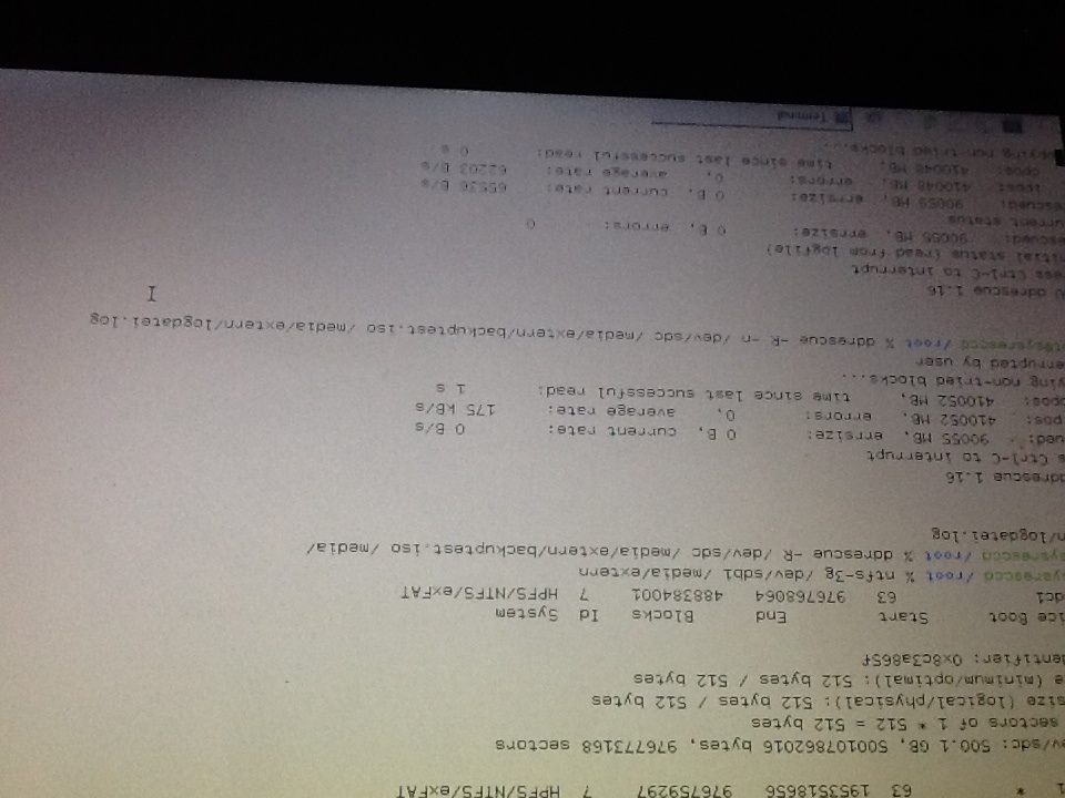 Erst später, nachdem wir ddrescue haben rückwärts laufen lassen (mit dem Befehl -R) hat es erst richtig angefangen und damit war ich auch schon bei ca. 90 GB! Alle anderen Kommandos, die ich anschließend versucht habe (-R -d) bzw. -R -d -v, habe ich immer mit der gleichen iso-Datei und dem gleichen Lognamen verwendet, so dass ich gehofft hatte, dass diese iso-Datei vergrößert wird.