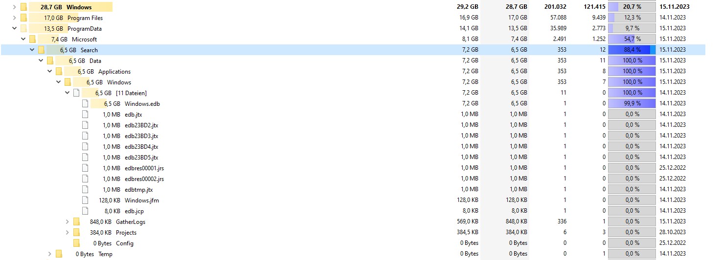 Du redest hier von 6 GB Index.