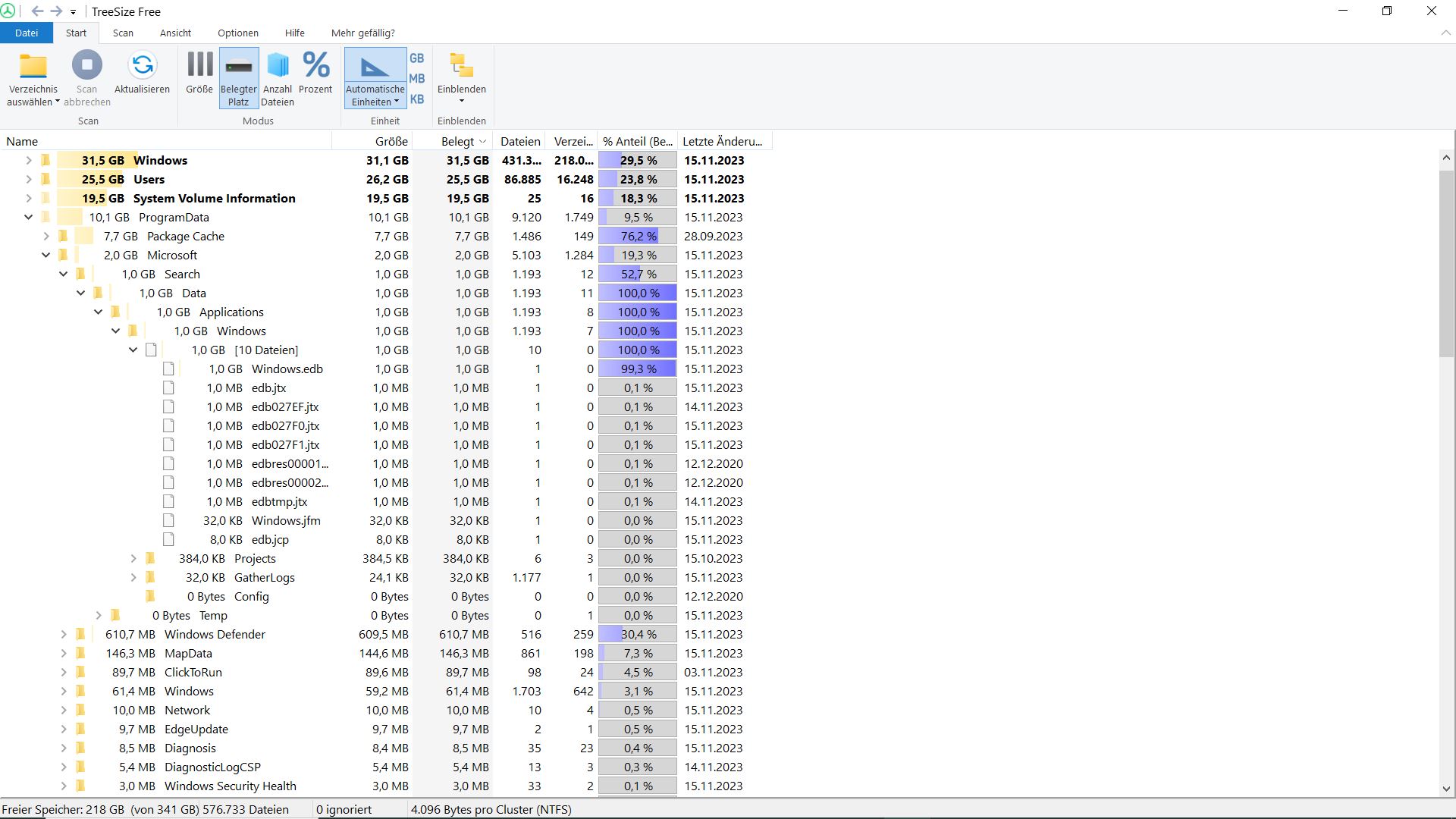 Dateien sind vollkommen egal. Du hast mehr als genug Speicher frei.MichaelBer schrieb:Da sind bestimmt viele Dateien mit dabei, die es schon lange nicht mehr auf dem Rechner gibt.