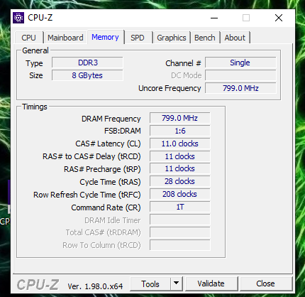 Max bandwidth PC3-12800 (800 MHz)