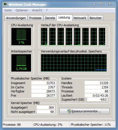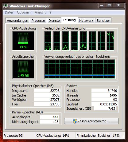 Und bei meinem System (16GB Ram-W7) liegt die Speicherauslastung schon bei 2,1GB nach dem start, ohne das was auf ist.