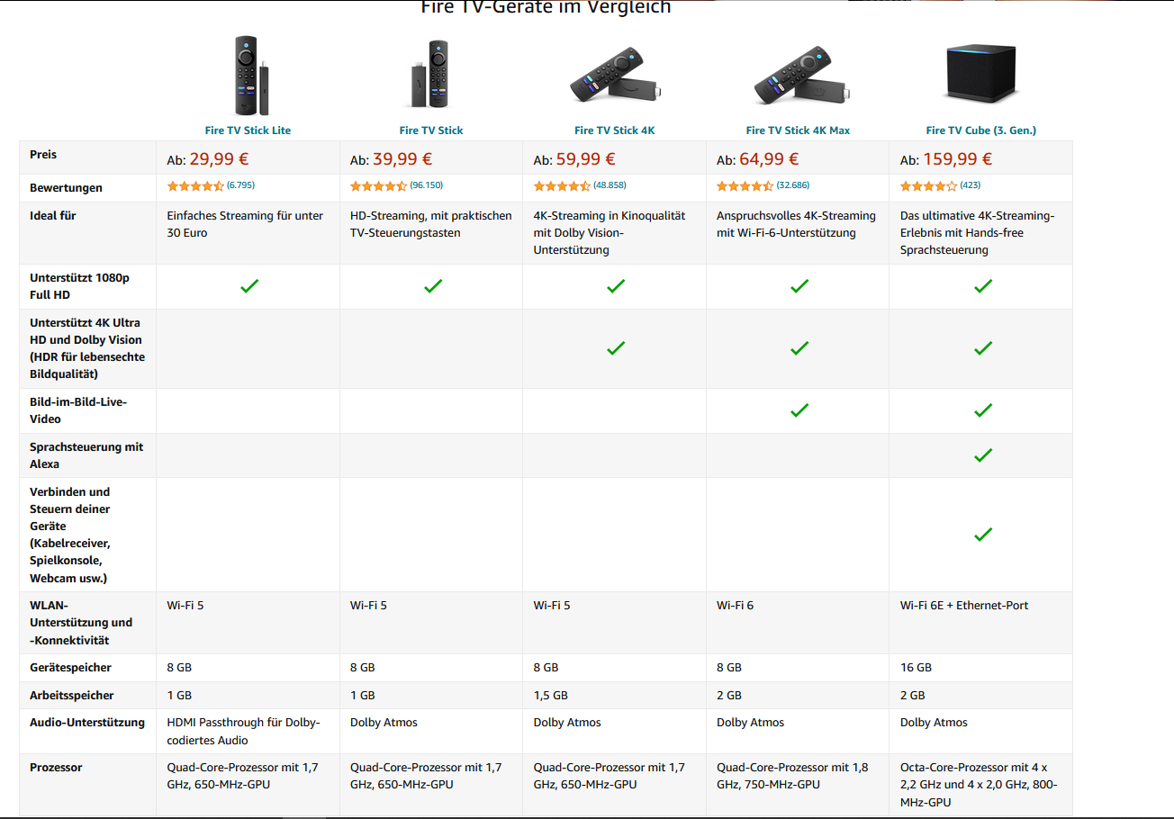 Amazon hat doch auf deren Seite direkt den Vergleich und alle Sticks aufgelistet, was die können.