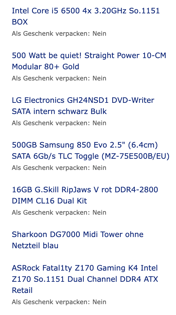 Habe schon mehrere Wochen damit geplant, möchte das ganze Zeug wirklich schon bald bestellen