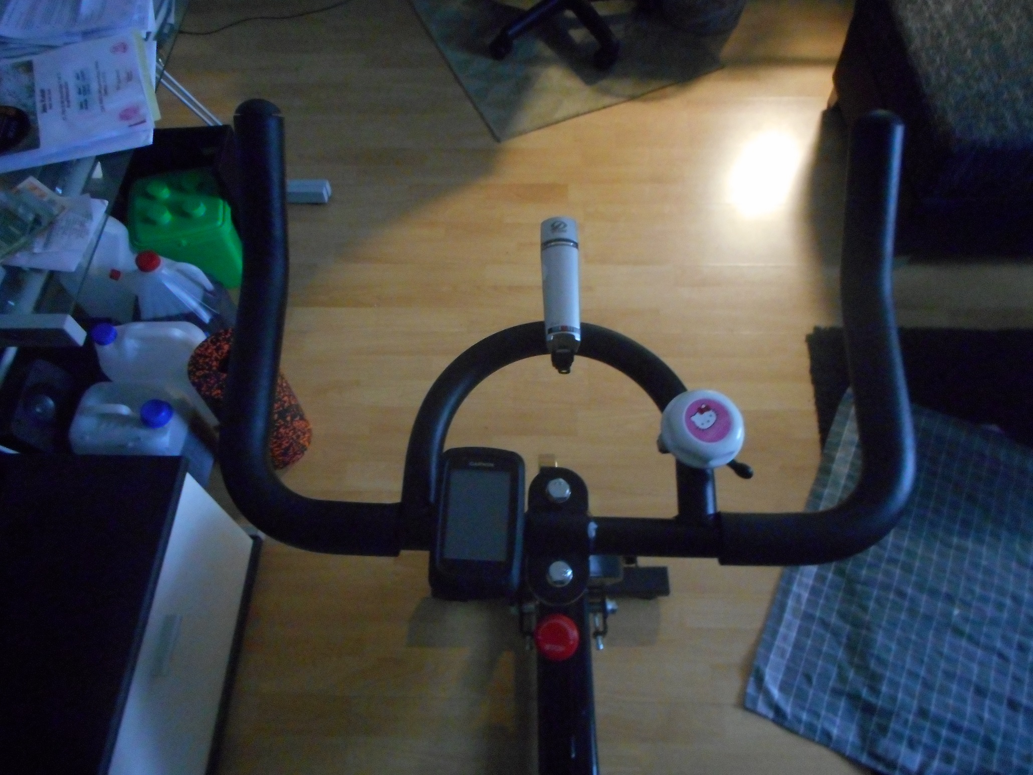 Schaltet trotzdem besser. Hier kann man beim Runterschalten auch gleich 2 Gänge schalten. Das konnten die Alivio-Hebel m.W.n. nicht. Zudem hat die 8-Speed eine bessere Ganganzeige. Man sieht direkt die Nummer des eingelegten Ganges, während man das beim Alivio-Hebel für hinten nicht so genau wusste mit dem beweglichen Balken. Die Übersetzungsgröße ist wie beim Kettler, nur dass oben rum endlich der eine Gang größer da ist, der mit 48 zu 11. Die Federgabel ist tatsächlich ein Modell, wo man eine Blockierung reinmachen kann. Bremsen funktionieren vernünftig, auch wenn es keine Magura ist. Licht tut es auch vernünftig, Standlicht geht auch.