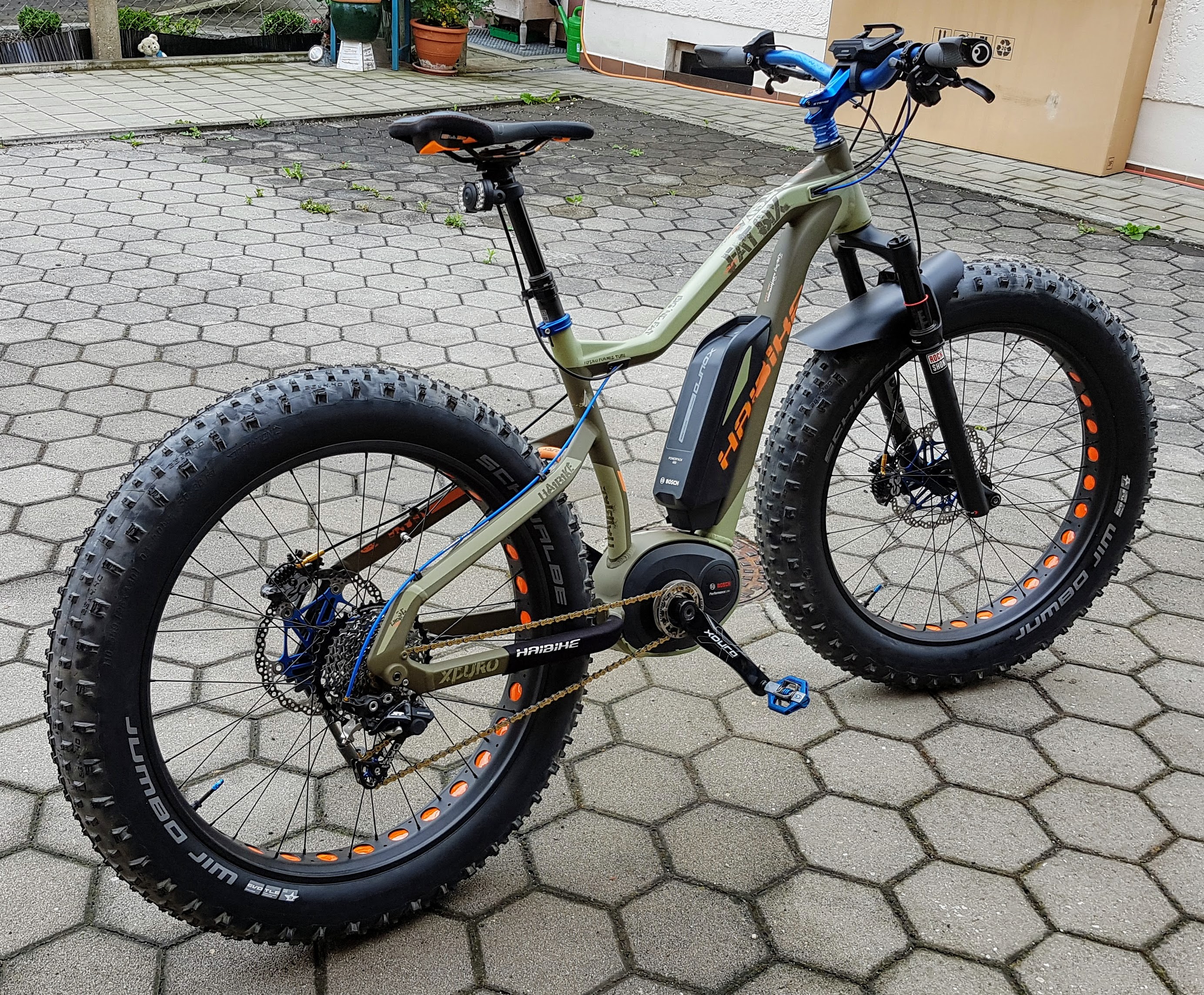 Nachtrag, 28. Feb. 2022: Ich weiß nicht, wie ich auf diesen Quatsch mit den Scheiben bzw. Kettenrädern gekommen bin. Vorne waren es beim Kauf drei Kettenräder, und hinten war ein 8-fach Zahnkranz. Das ließ ich dann umändern. Es gab Probleme mit einer sauberen Einstellung der Schaltung - nur der Monteur, der den Umbau vorgenommen hatte konnte es. Da die betreffende Firma dann schloß,
