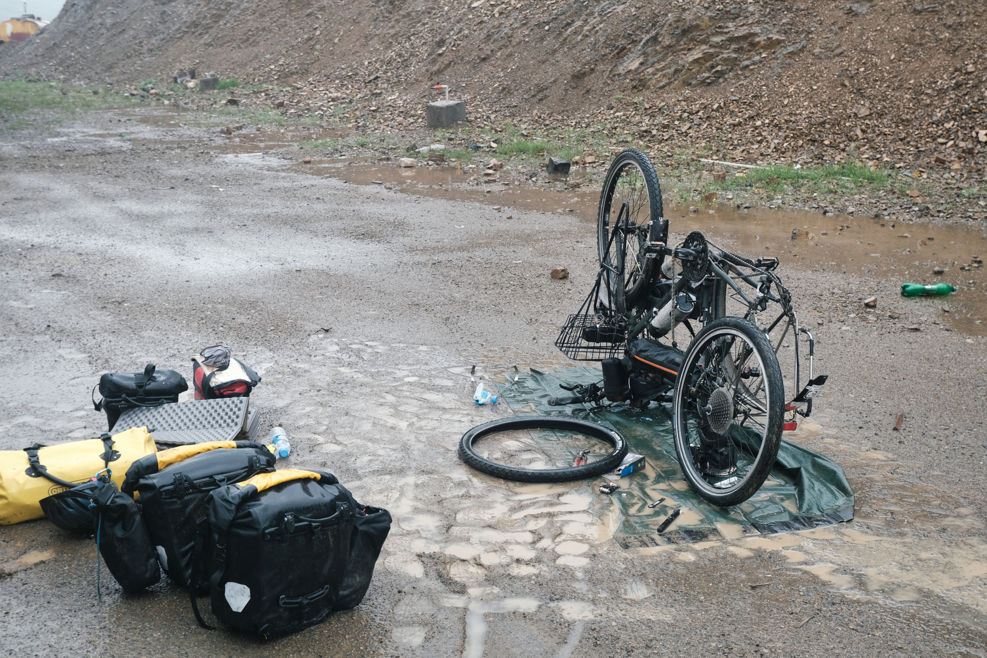 Defekt war so ziemlich alles. Fehler im Reifen, Sattelbruch, Rahmenbruch, Bremse defekt, Tretlager defekt, defekte Felge und unzählige platte Reifen. War zwar immer wieder nervig, aber es war auch immer wieder eine interessante Herausforderung, mitten im Pampa alle möglichen Defekte, meist provisorisch reparieren zu müssen.
