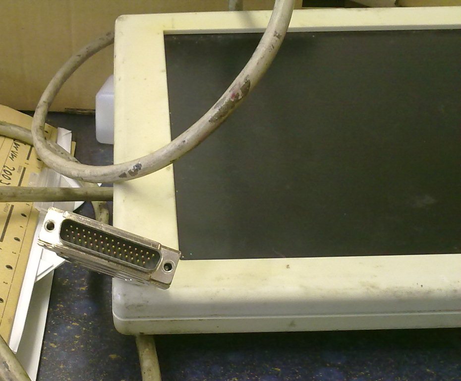 Allerdings hat dieser kein normalen VGA Anschluss, sonder ein Stecker der Ähnlichkeit mit einem Parallel Port Stecker hat.