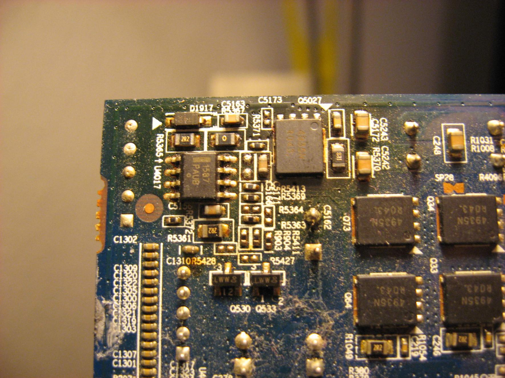 Habe heute schon in einen anderen Post über den Umgang bei der Gewährleistung meiner Grafikkarte geschrieben. Nach eingängiger Untersuchung habe ich den Tod der Karte gefunden denke ich. Auf der Ecke der Karte ist ein silberner kleiner eckiger Kondensator oder so etwas. Das Board hat an dieser Stelle anscheinend auch starke Hitze erfahren das es dort stark verfärbt ist. Ich stelle mal ein Bild davon mit rein, wüsste gern was das ist?!