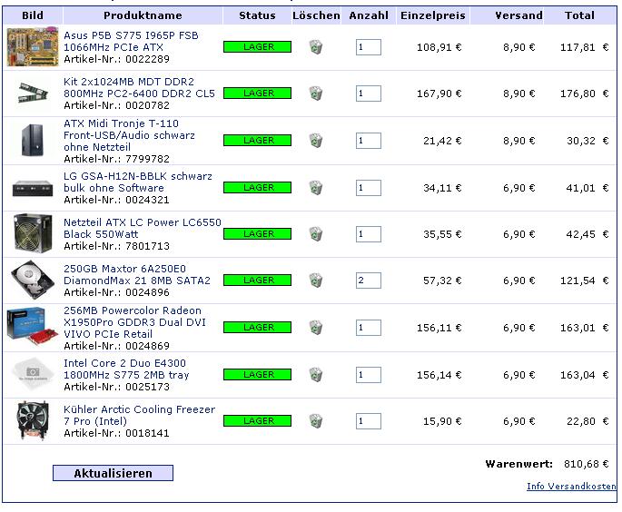 Arbeitsspeicher: 2GB (2x1024MB) DDR2-RAM PC800