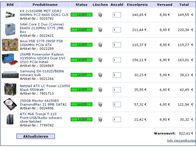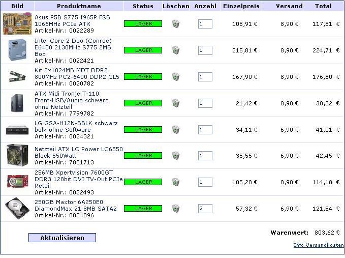 Nacheinander den Link klicken, und dann auf "in den Warenkorb legen". Es öffnet soch immer bei jedem Link ein neues Fenster, in dem aber trotzdem der alte Warenkorb stehen sollte