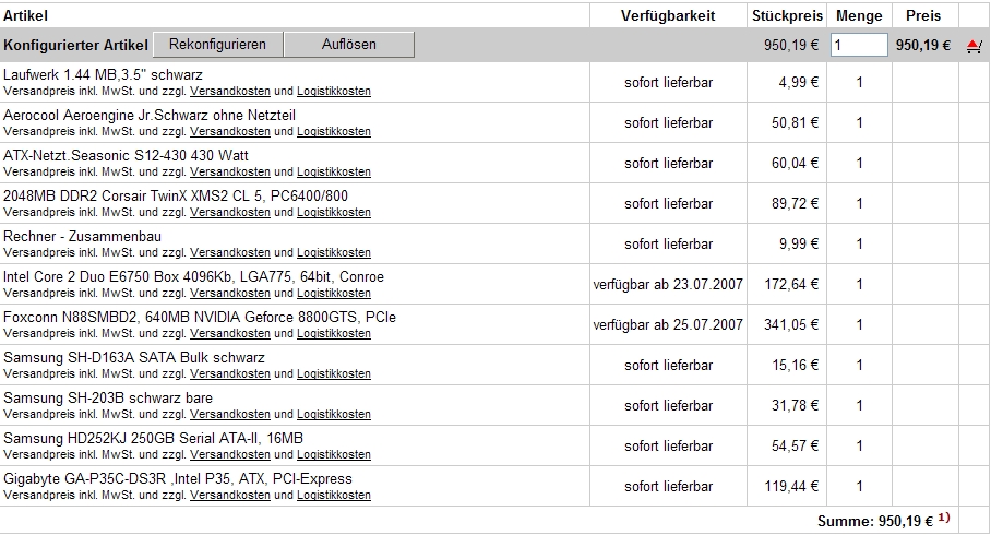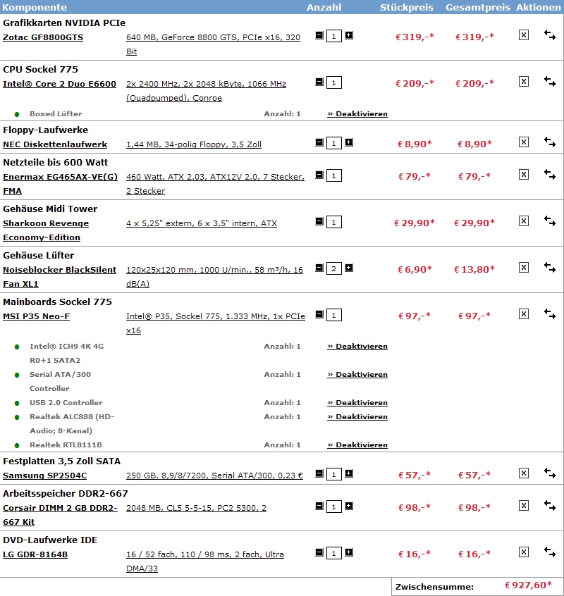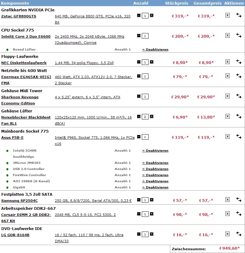 Achja und Prozi muss Intel sein und Graka muss GeForce sein, auch wenn Konkurrenz wahrscheinlich günstiger ist.