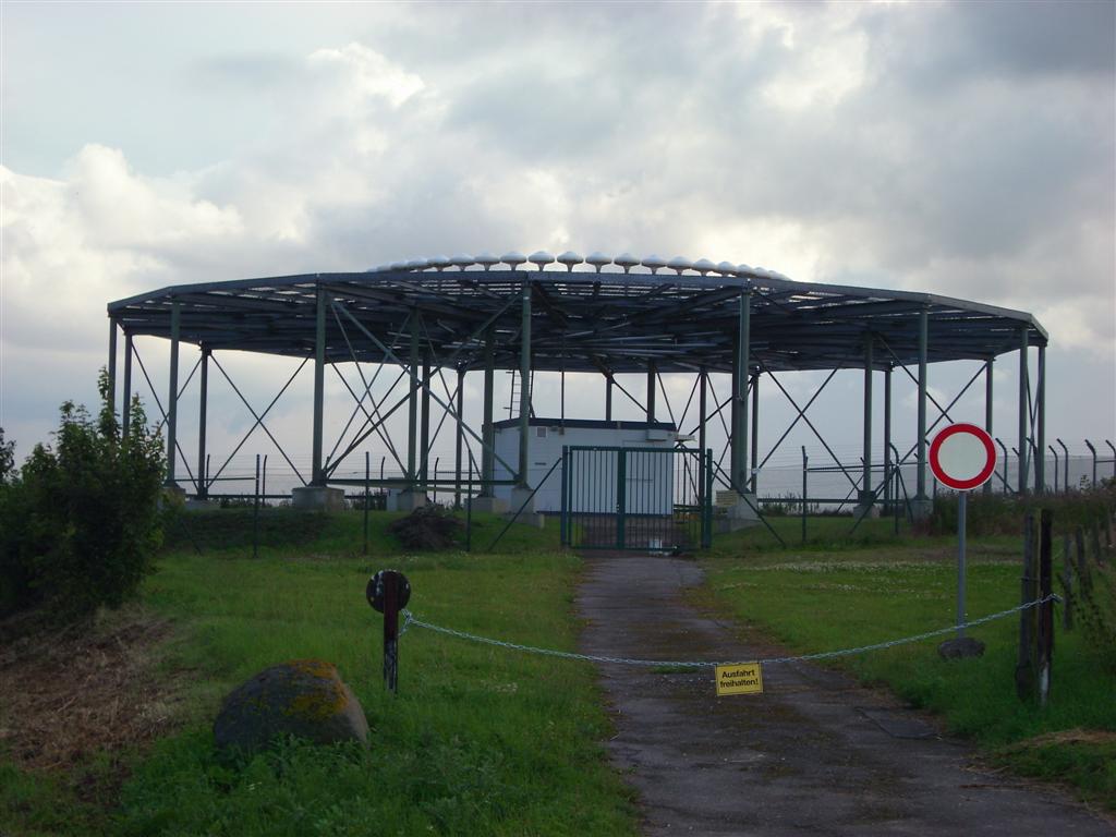 Möglicherweise ist es aber auch ein unterirdischer Gasbehälter und das Silberne auf dem Gestell sind Überdruckventile. Allerdings fehlen hier die "Feuer verboten!"-Schilder.