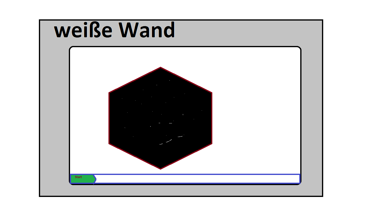 Eigentlich kann das Schwarz aus dem Sternbild (6Eck in der Mitte) nicht dunkler als die unbeleuchtete Wand drumherum sein. So dachte ich zumindest. Aber es war deutlich dunkler als die weiße Wand drumherum. Was erkläre ich mir dann daraus, dass man "Schwarz" nicht projezieren kann...?
