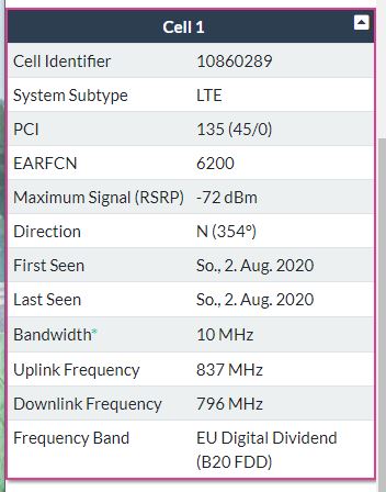 Aktuell habe ich das Handy am Wohnzimmerfenster mit dem Router positioniert in Blickrichtung zum LTE Mast ca. 1,34 Km.