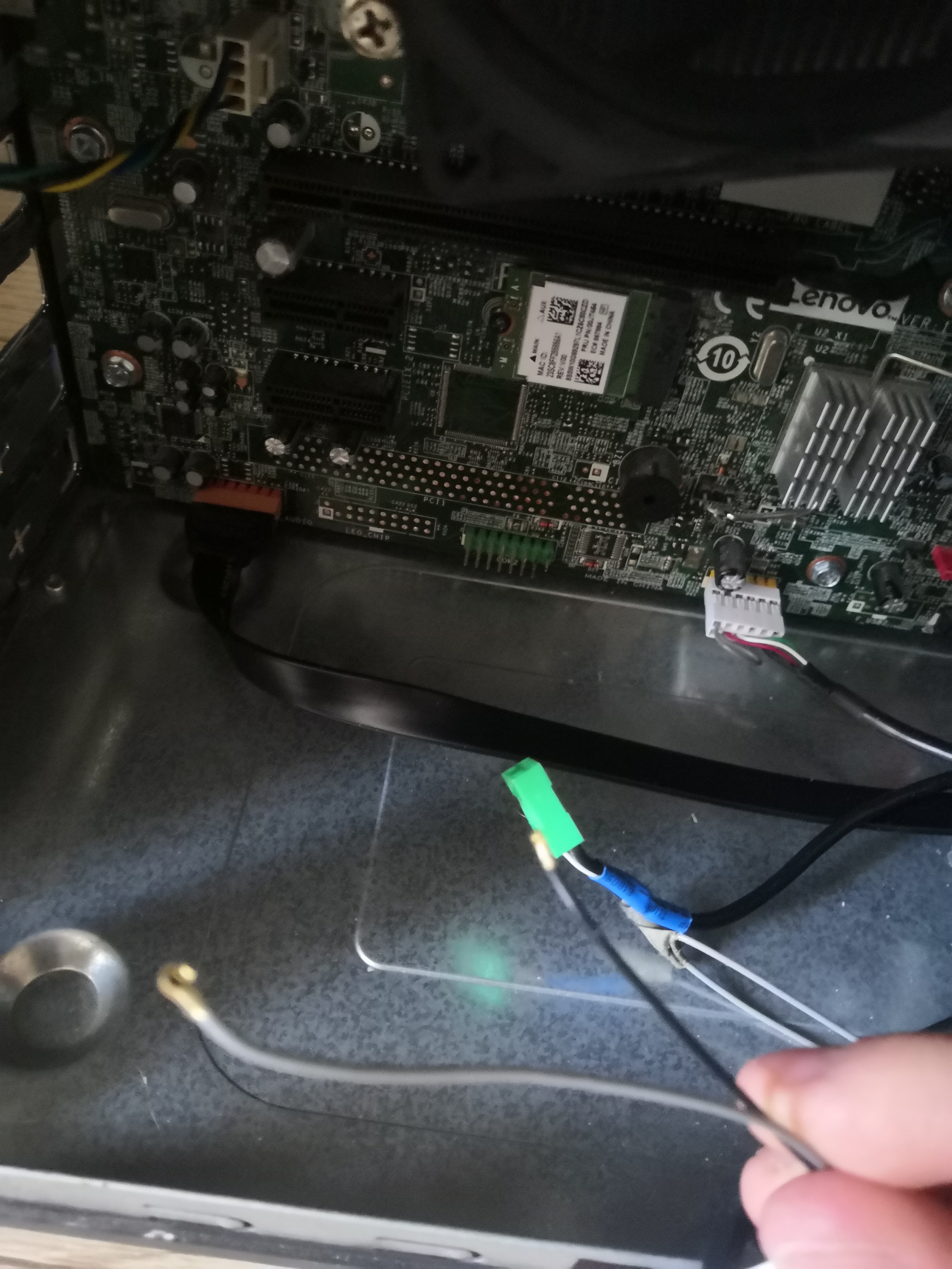 Da ich meinen Lenovo OEM Fertig PC verkaufen will, da ich mir einen neuen selbstgebauten PC gekauft habe und habe diesen nun auseinandergebaut um ihn zu reinigen damit ich den PC verkaufen kann. Nur hab ich leider kein Foto gemacht bevor ich ihn auseinandergenommen habe und habe nun dieses Kabel über. (s.Anhang) Weiß irgendjemand von euch für was dieses Kabel gut ist und wo es auf dem Mainboard hingehört? Es ist wohl irgendeine Antenne, weil das Kabel nach vorne zur Gehäusefront geht. Ich tippe auf Bt oder so, weiß aber nich wo es hingehört.