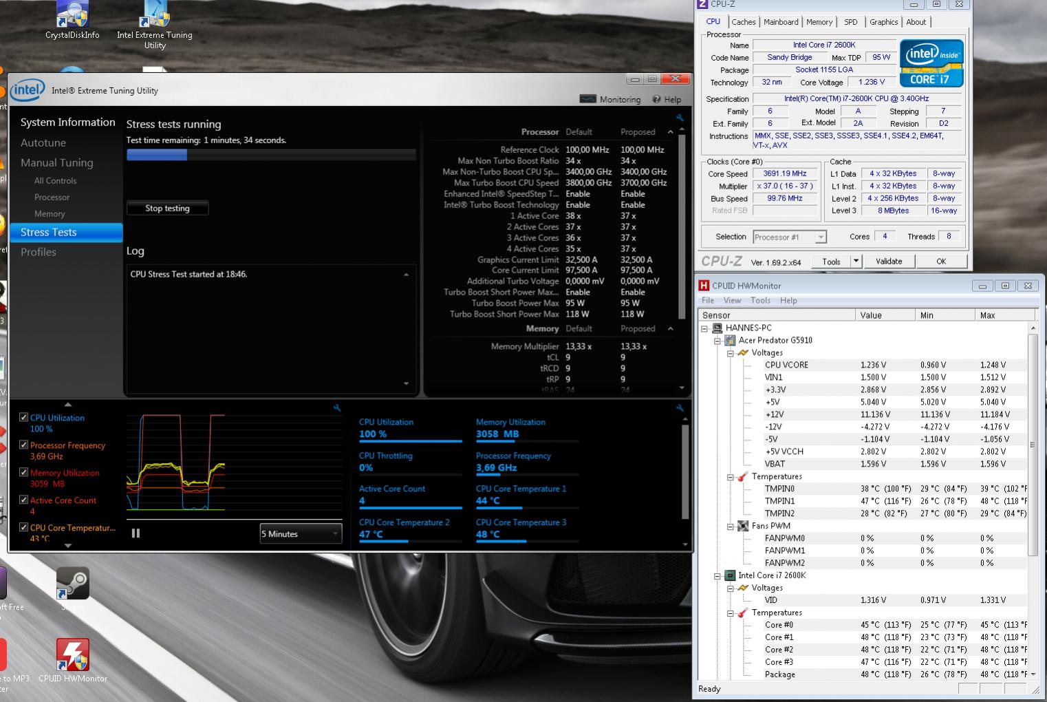 Habe mahl alle Multis auf 37 verstellt nur das problem ist bei mir das sich die Voltage der CPU auch automatisch erhöht.Mit Prime95 stress test bekomme ich nur die normalen 3.5 ghz und 1.2 Voltage hin beim intel stress test sind es 3,7 aber 1,237 Voltage