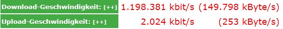 Du kannst ja froh sein das du nur knapp 1,2Mio hast ich habe nach ca. 20 maligem Testen erst meine 100K (ich habe nen 100K Leitung endlich freigeschalten bekommen) erreicht davor hatte ich immer so um die 3-3.5Mio kbit/s