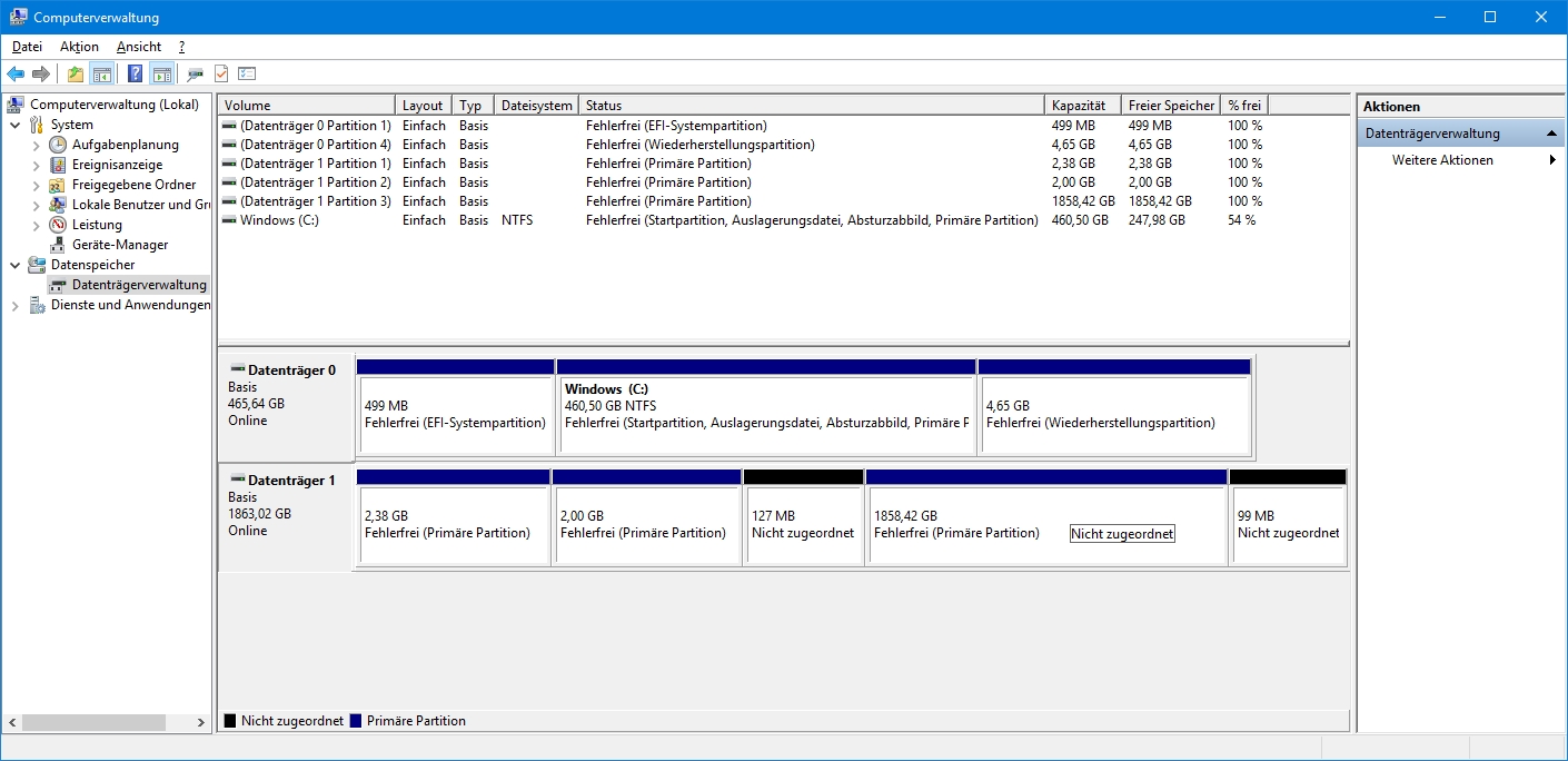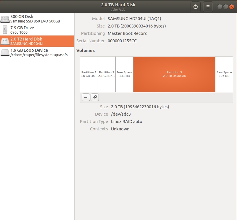 ich mache zurzeit eine kleine Festplatten-Inventur und bin dabei über eine 2TB Samsung gestolpert, deren Inhalt bzw. deren Partitionen ich nicht ganz einordnen kann. Windows 10 kann die Festplatte nicht richtig mounten, also Laufwerksbuchstaben zuordnen und Ubuntu zeigt auch nicht sehr viele Informationen an, siehe folgende Screenshots: