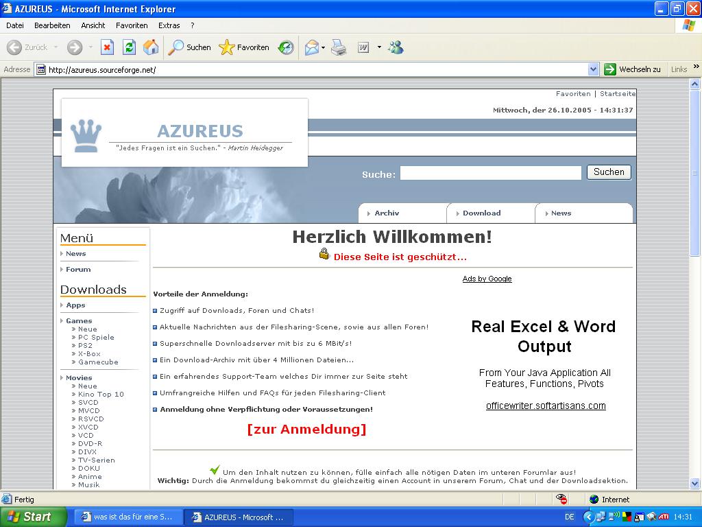 Ich glaube da hat irgendein Programm, das du dir eingefangen haben mußt, die Azureus-Seite umgeleitet. Evtl. hat es deine HOSTS-Datei entsprechend abgeändert. Unter XP findest du die Datei unter WINDOWS\system32\drivers\etc