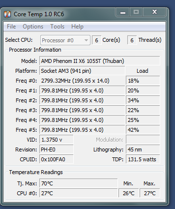 CPU: AMD Phenom X6 1055T (6x2.8Ghz)