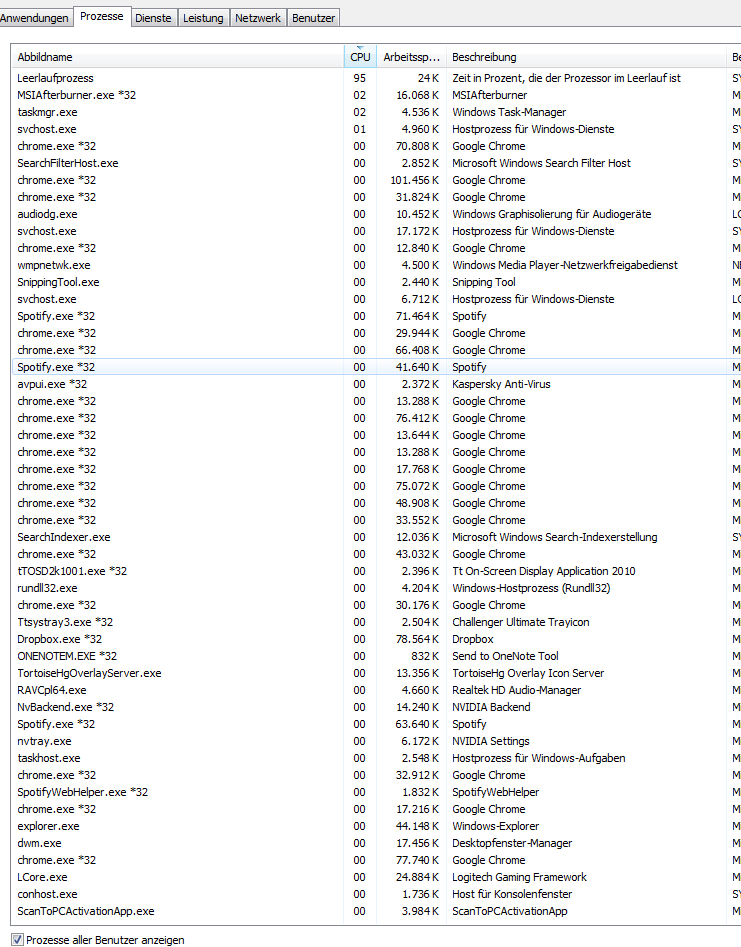DArüber sind nur weiteres Threads des Chrome und Kaspersky was aber auch nix an CPU zieht