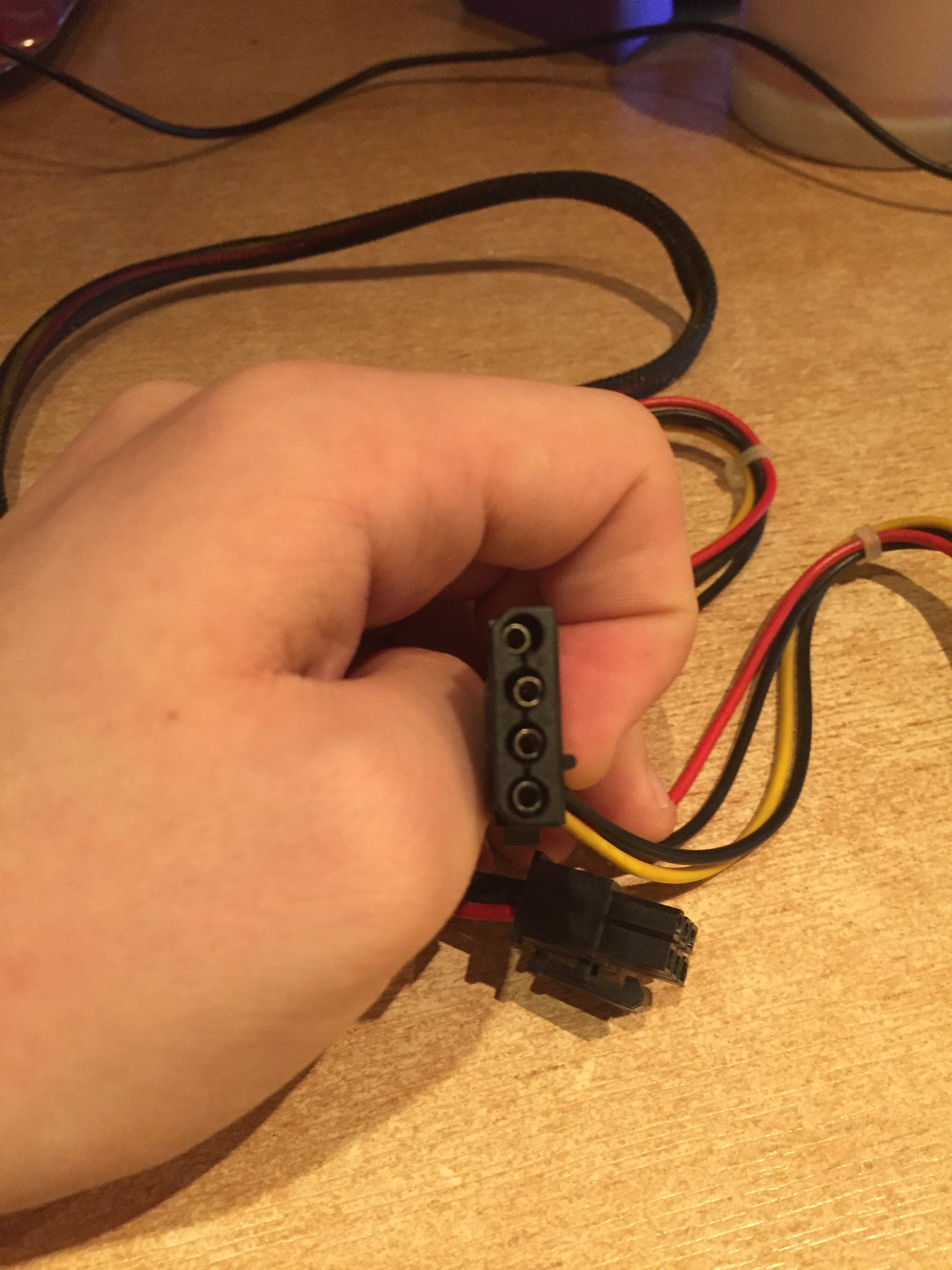 Von einem modularen Netzteil - das Kabel würde vom Netzteil in einen Molexanschluss einer z.B. älteren Festplatte oder Diskettenlaufwerk kommen.