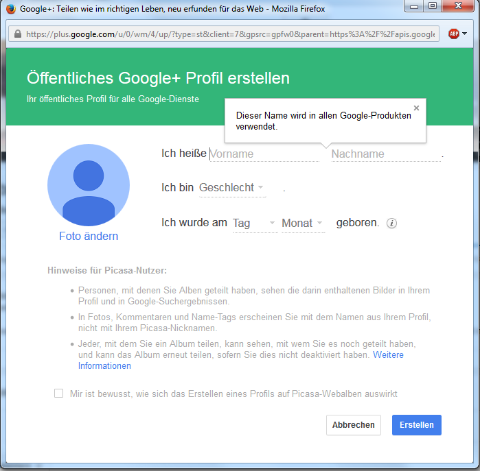 Hier mein bereits bestehender GooglePlus Account, extra für YouTube damals angelegt, mit dem auch bis gestern alles geklappt hat auf Youtube: