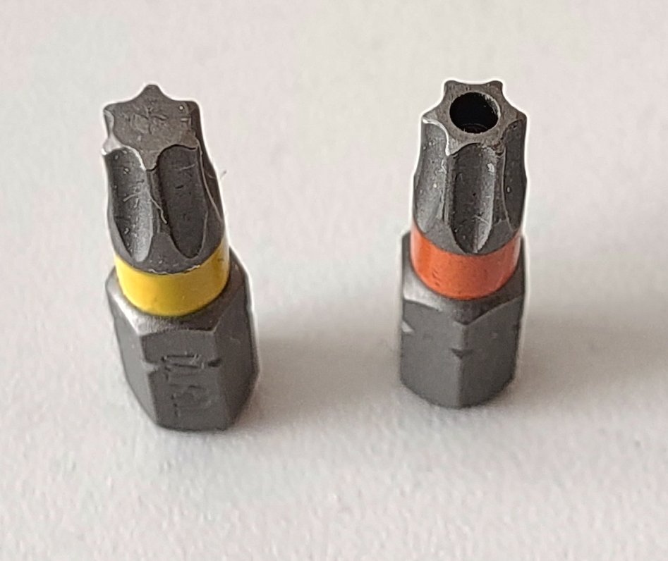 Ich habe diese beiden Bits die auf dem Bild zu sehen sind. Sie stammen beide aus einem BOSCH Schrauberbit-Set.