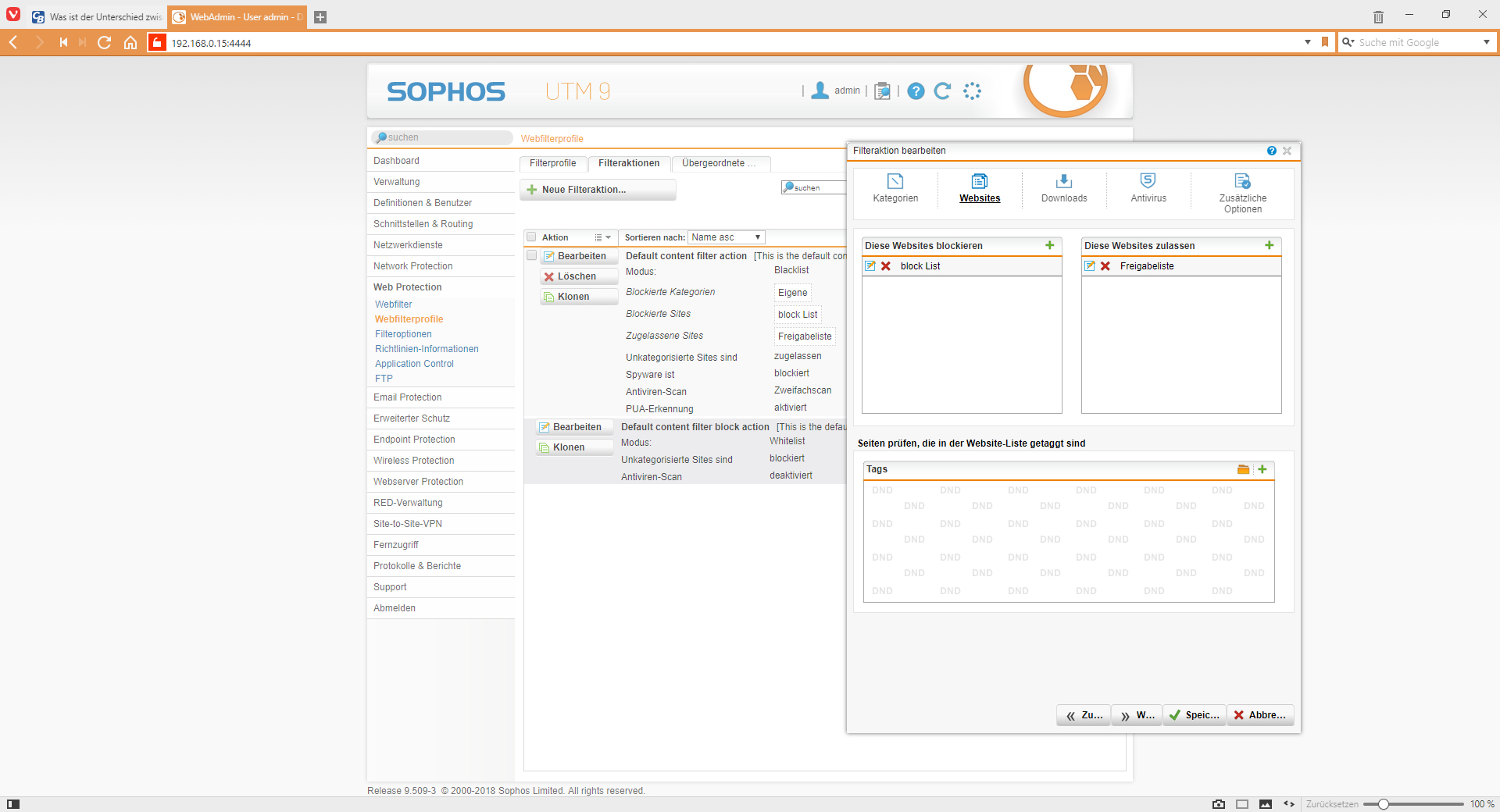 Die folgenden Ausführungen sind als allgemeine Hinweise anzusehen. Ich kenne Sophos nicht im Detail und unter Umständen wird das dort anders definiert bzw. gehandhabt. Normalerweise arbeitet man mit Black- bzw. Whitelists aber so: