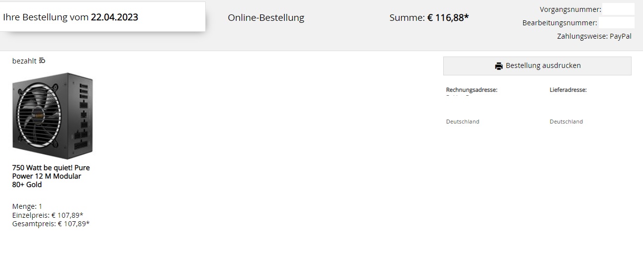 ich habe am Samstag ein Netzteil bei MF bestellt. Als ich bestellt habe stand da 'Lagernd | > 5 St. weitere sind unterwegs'' Jetzt gibt es plötzlich dieses Netzteil nicht mehr. Ich kann unter meinen Bestellungen nicht auf die Seite des Netzteils draufgehen und beim Status steht nur ''Bestellung ausdrucken''
