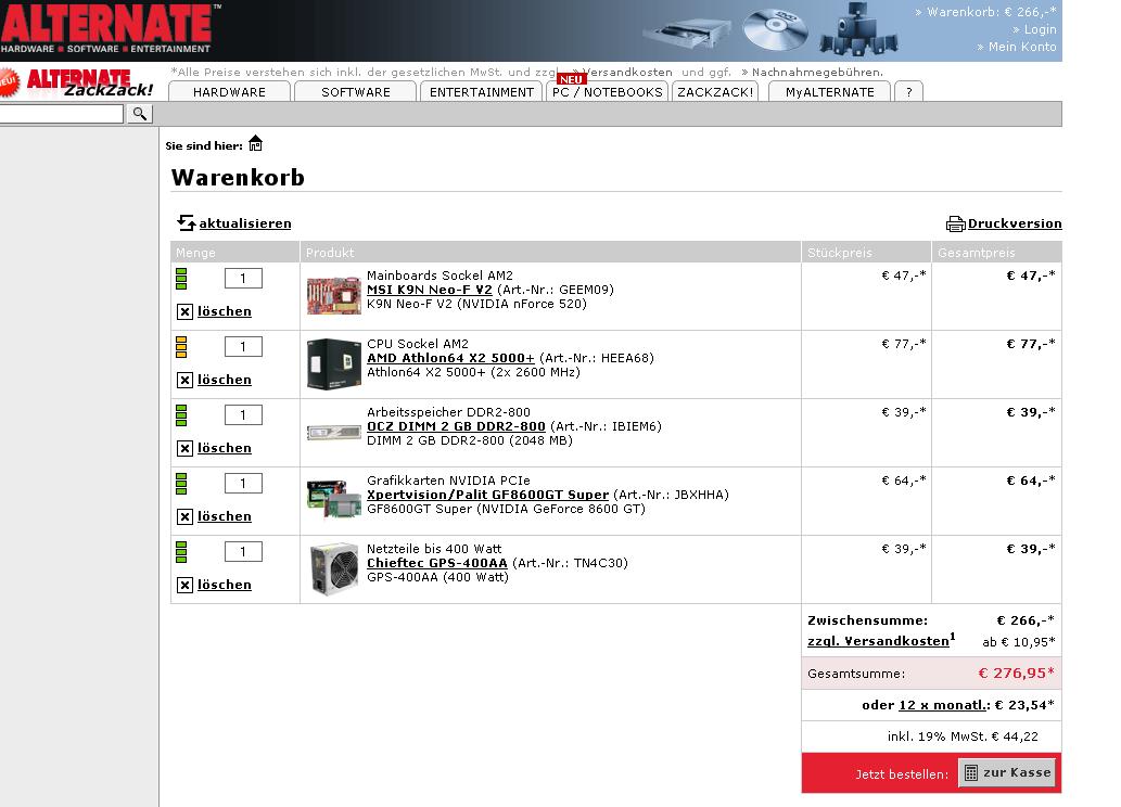 ch habe schon mal bei alternate.de geschaut, blos ich weiß immer nicht ob die komponenten bei mir ins gehäuse passen und ob die sich mit einander vertragen.