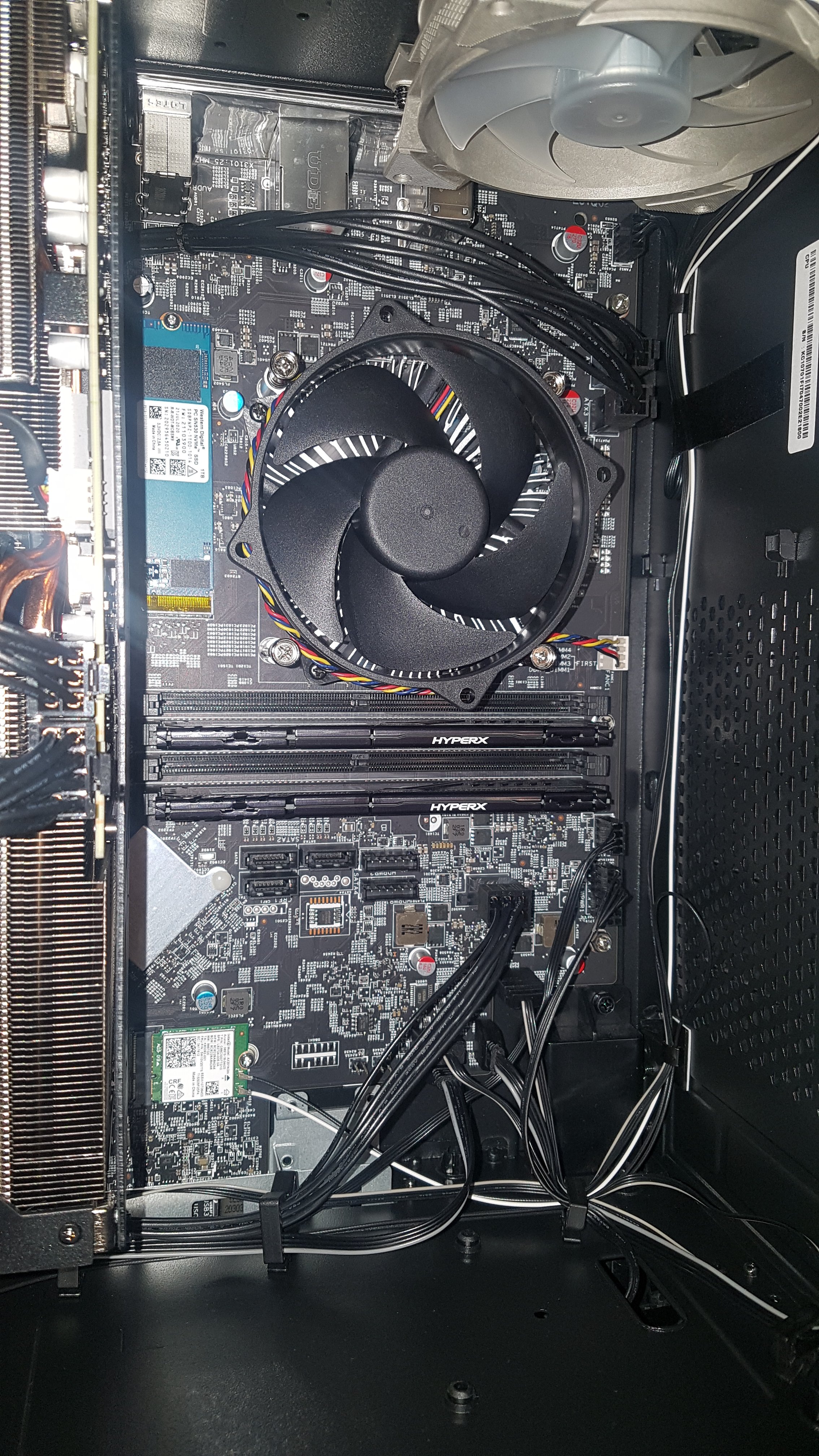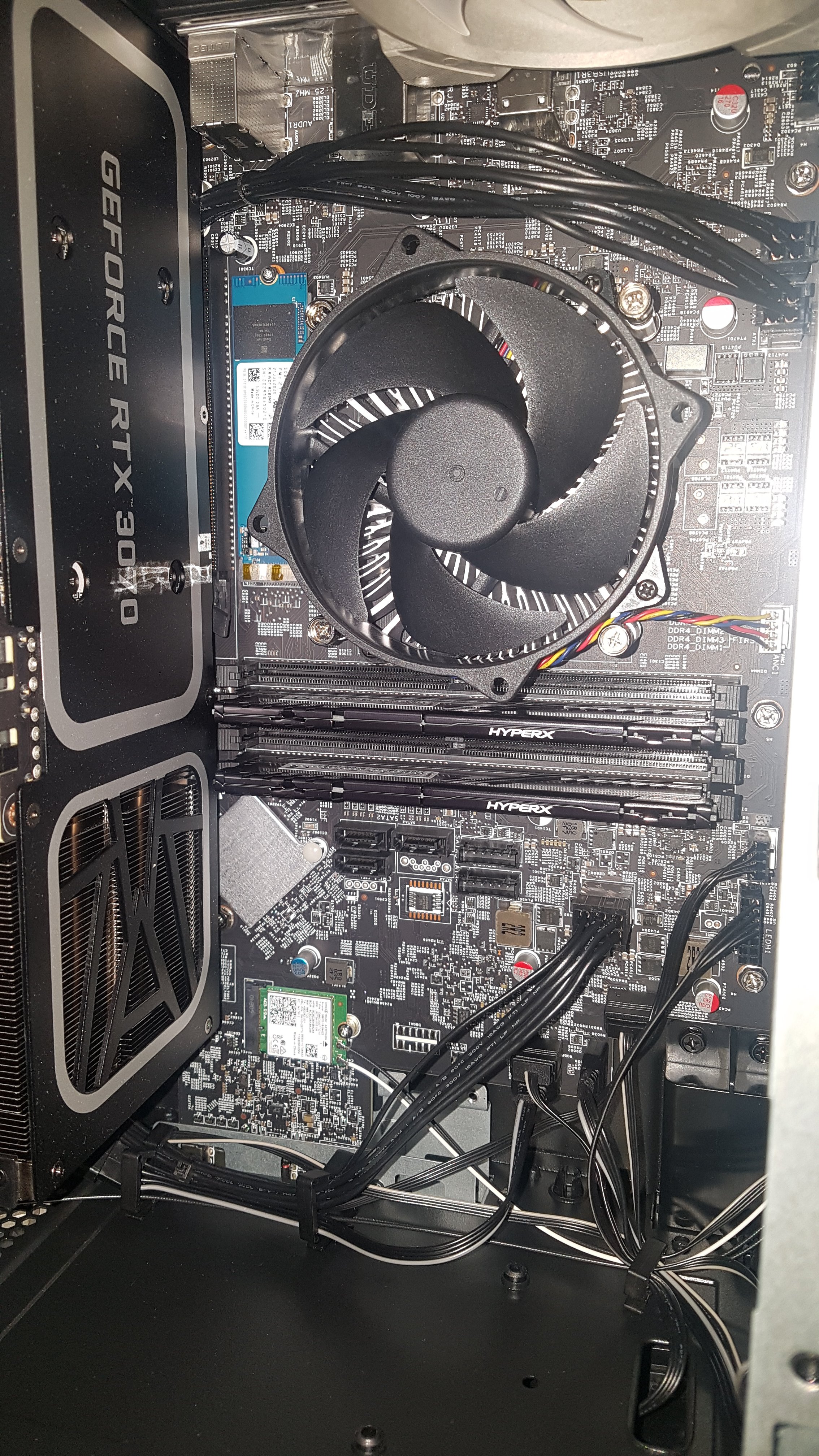 Unter dem CPU-Lüfter auf Deinem Bild ist die M.2. Aber es steht ja eindeutig im Datenblatt: 1x M.2 - und der Slot ist schon belegt. Der zweite M.2-Slot ist für WLAN (auf Deinem Bild ziemlich weit rechts) und für Aufrüstung des Festspeichers nicht zu nutzen. Das Datenblatt verrät uns aber nicht, ob sich irgendwo noch Platz für weitere Laufwerke findet. Daher: wir brauchen ein Bild vom ganzen Mainboard bzw. vom ganzen Innenraum. Und: Was willst Du ausgeben?Pokerfacekun schrieb:Wo ist denn der m.2 slot?