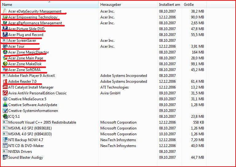 da es ein Acer PC is sind viele Acer programme drauf und na ja andere blöden sachn.