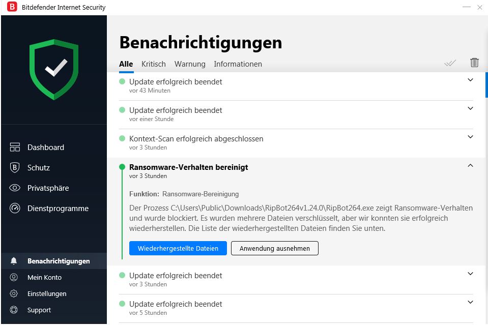 - Er versucht sich an Windows 10 ohne weitere Schutzsoftware. Deckung: >90% .