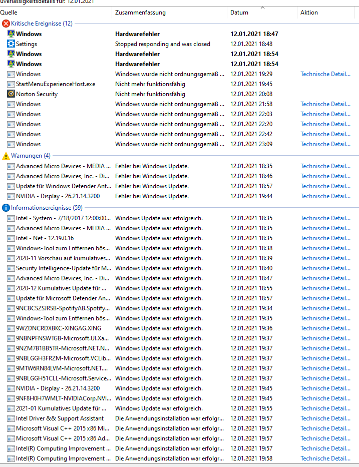 Ich habe Windows neu installiert und auch repariert, das neueste BIOS ist drauf und CMOS habe ich durchgeführt, ebenso BIOS Default, alles ohne Sinn.