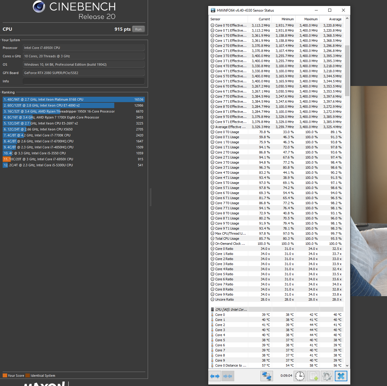 Der Rechner schmierte ohne Warnung und Bluescreen ab, manchmal im Minutentakt, bei Cinebench wurden macnhe "Kästchen" nicht gleich ausgefüllt sondern erst später, der Score ist eine Katastrophe, siehe Bild.