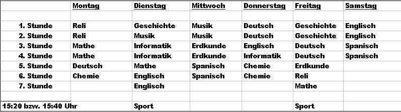 Hier mein Stundenplan - sieht komisch ist, ist aber so. (PS: Ja, ich habe acht Stunden Mathematik in der Woche. Leistungskurs + Erweiterungskurs "Logik" (ma-E).)