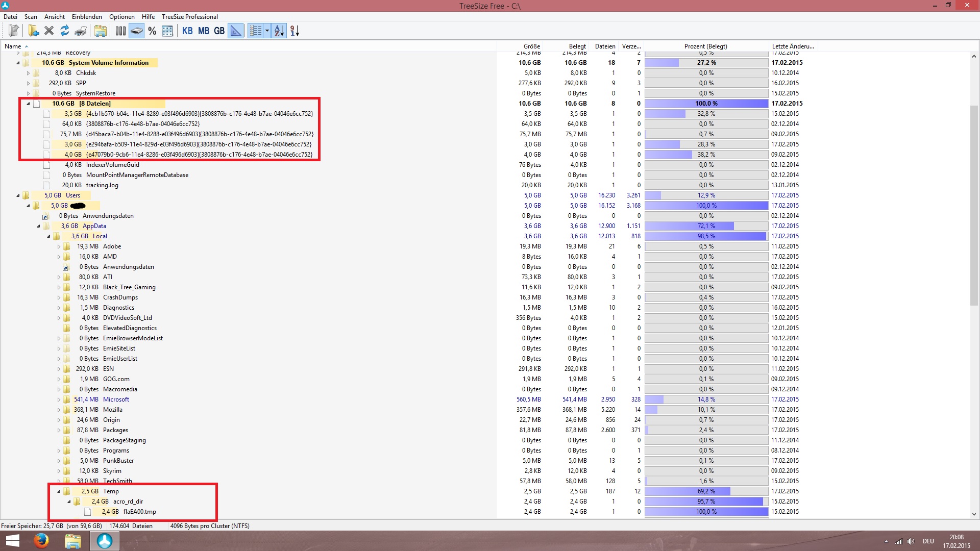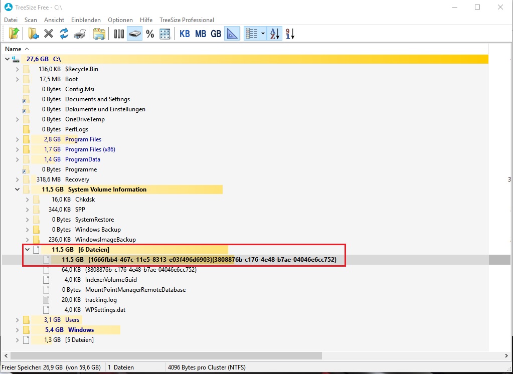 hab dann mal mit FreeTreeSize geschaut, was denn da wie viel einnimmt.