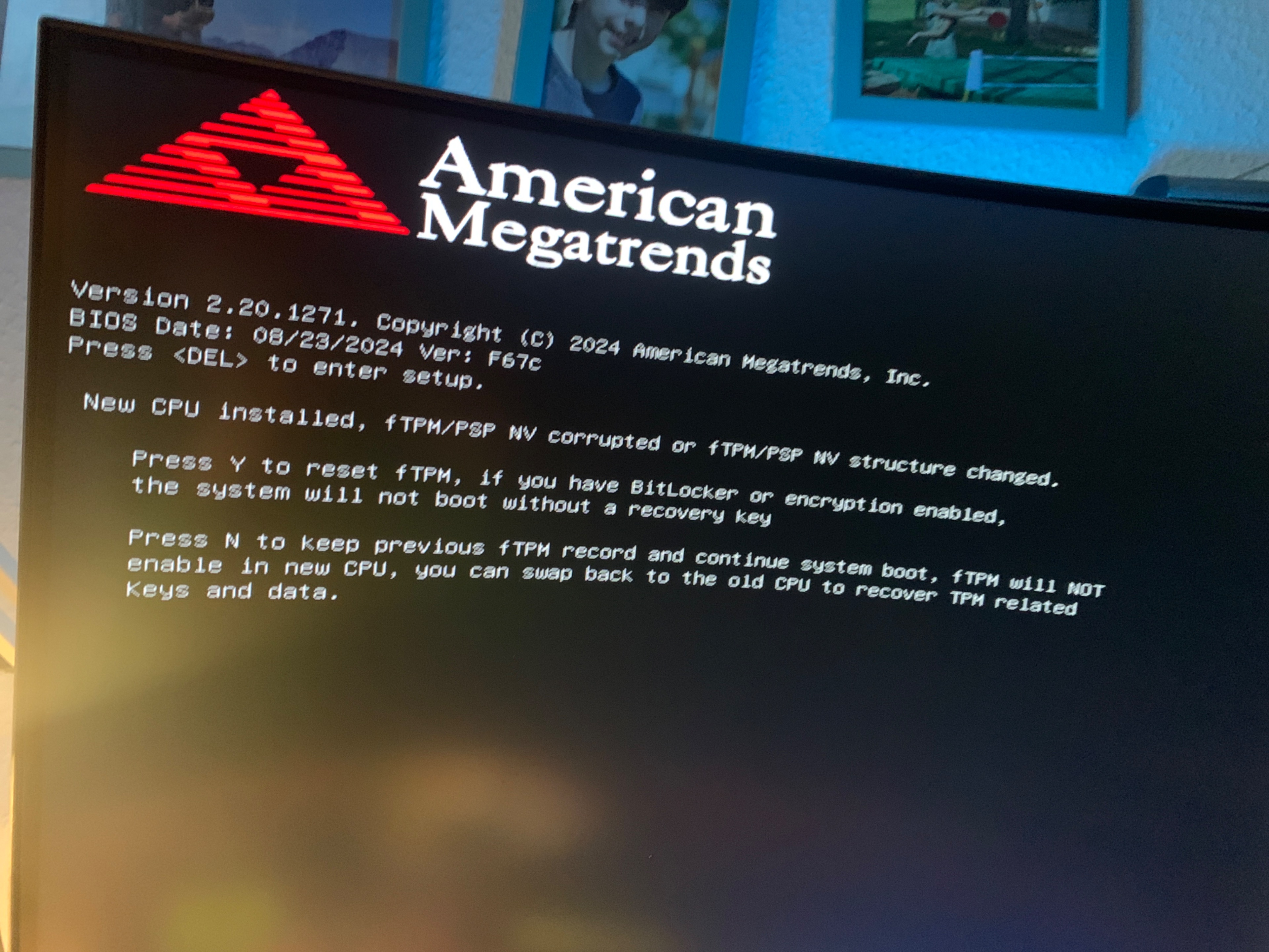 Da steht wenn du N drückst geht kein TPM (was du für Windows 11 brauchst) und wenn du Y (= Z auf deutschen Tastaturen) drückst löscht er den Key deiner alten CPU und legt einen neuen an damit Windows 11 wieder funktioniert.
